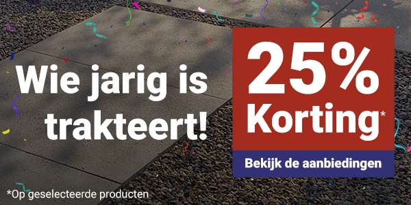 25 jaar Bestrating.nl vieren we niet alleen, maar samen met onze klanten. Want zonder jullie vertrouwen hadden we dit jubileum nooit bereikt. Daarom hebben we 25 dagen feest en trakteren we van 1 tot en met 25 september 2025 met bijzondere acties en aanbieden.
