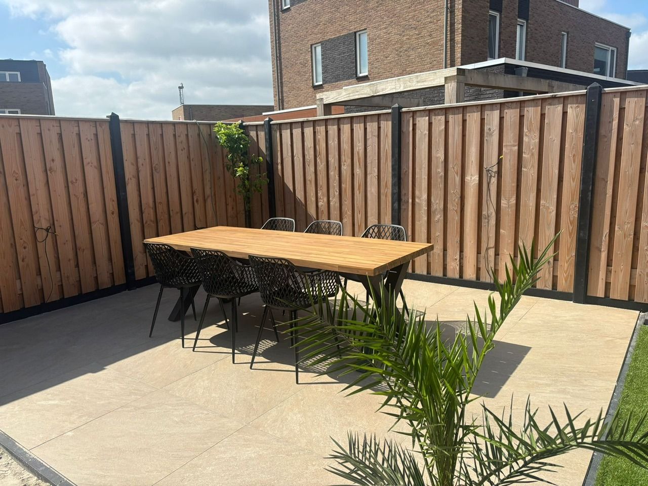 Opsluitbanden geven de bestrating stevigheid en voorkomen dat de tegels aan de randen gaan bewegen. Plaats de opsluitbanden direct tegen de buitenste tegels aan. Graaf een sleuf, zet de banden op de juiste hoogte en zet ze vast met palen. Vul de sleuf aan met zand of grond en verdicht goed. Voor een uitgebreide uitleg kun je terecht bij onze blog over opsluitbanden plaatsen. Zo blijft je terras of pad jarenlang mooi en stevig.
