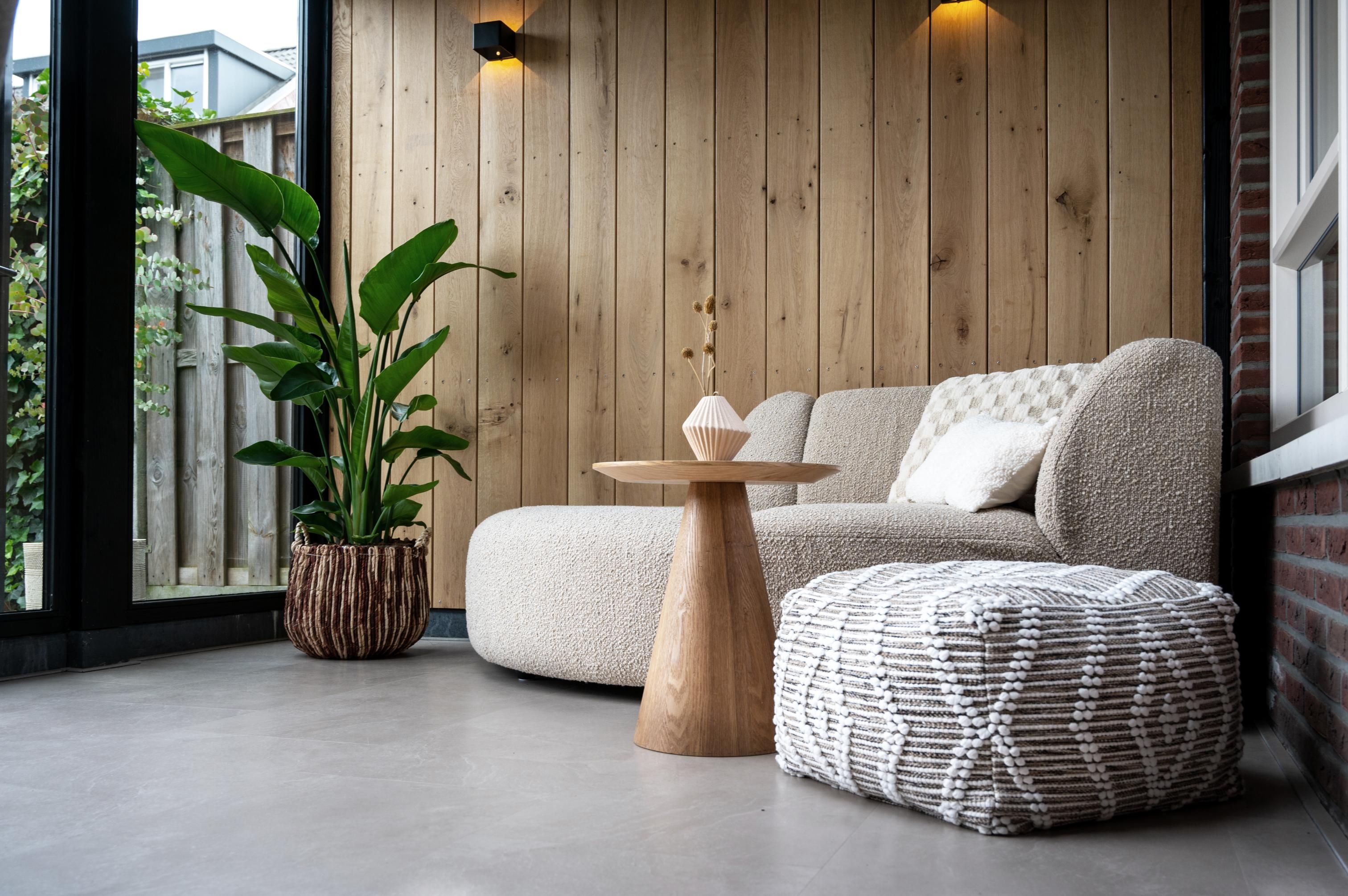 Na het kiezen van je buitenverblijf komt de inrichting. Start bij de vloer: keramische tuintegels in Beige of Silver zorgen voor een luxe basis die zowel binnen als buiten te gebruiken is. Deze tegels van 120x30 cm of 120x60 cm creëren een ruimtelijk effect. Voor een warme uitstraling bij de Florence passen houtlook tuintegels perfect, terwijl de moderne Verona goed past bij strakke marmerlook tuintegels.