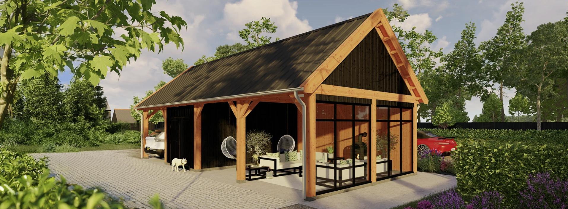 Benieuwd naar de mogelijkheden van dit model? Met de 3D configurator stel je eenvoudig jouw ideale buitenverblijf samen. Je kiest afmetingen, afwerking en indeling en ziet direct een realistisch sfeerbeeld. Let wel: de configurator geeft een algemene indruk en toont niet exact hoe het buitenverblijf in jouw eigen tuin of erf zal staan.